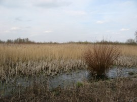 The path follows a broad track that heads round to the left by the edge of Cleveland Lake before reaching a gate where the route heads sharp right away from the lake. This stretch of path is followed up to another track where the well signed route heads to the left, following the track round three sides of a field before heading up to join the track bed of the railway line that used to run to Cricklade. The Thames Path heads to the right along the course of the old railway until it reaches a bridge over the river where the route descends from the railway embankment to join a path, photo 26, once again running alongside the River Thames with meadows of the North Meadow National Nature Reserve to the left, photo 27. This meadow is well known for the Snake's Head Fritillary that flower there every Spring. While we were a bit too early to see the flowers but there were warning signs in place asking walkers to stick to the paths as the plants were starting to grow.