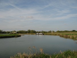 This road is followed to the Buckland Road and Tadpole Bridge, photo 10. Here the route rejoins a riverside path along a more enclosed area of path with tall trees lining much of the opposite bank, photo 11. To the left of the path is the Chimney Meadows National Nature Reserve which contains 250 hectares of floodplain flower rich meadows and wet woodland. The route continues by the arched wooden Tenfoot Bridge before heading out into more open land alongside the nature reserve, photo 12. Eventually the route reaches the Shifford Lock cut where the old course of the river heads off to the right and the newer cut, built to aid navigation, continues straight ahead.