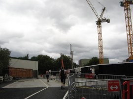 Reaching Wandsworth Bridge, photo 40, the path heads up Wandsworth Bridge Road to safely cross the road by a large roundabout before heading back down the other side of the road to some steps that lead back down to the river. At the bottom of the steps was a hoarding showing the site of a proposed new walkway under the bridge, photo 41, with an anticipated opening date of Winter 2010 which was some nine months earlier, a useful addition if it ever opens. It was then back downstream past more new housing, photo 42, to the Battersea Heliport.