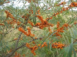 Walking along this stretch of path I passed a number of sea buckthorn bushes, their stems covered in bright orange berries, photo 28. As it was high tide the newly created saltmarsh was flooded by the tide, the remains of the old sea wall can be seen in the distance, photo 29. Photo 30 was taken where the revised route of the footpath rejoined the old sea wall, close to Bradwell Marina.